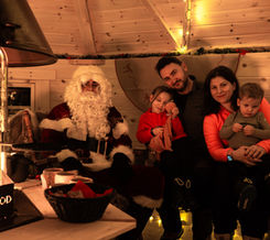 Plötsligt, mitt i den stilla skogen, uppenbarar sig ett varmt sken. Där, i sin stuga, väntar självaste Tomten på er. Han välkomnar er med ett leende. Barnen får inte bara träffa Tomten, utan också en present från honom. Om ni vill, kan ni lämna en present till oss innan, som Tomten kan dela ut till barnen för en extra personlig touch.
